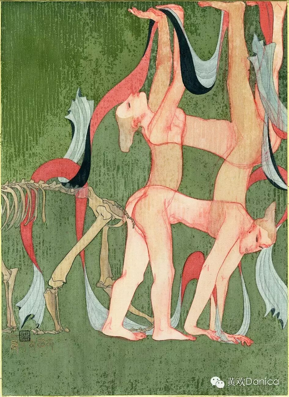 黄欢博士:说到这,听众可能没有一种形象上的想象吧,所以可能很难理解您说的意思,但是我觉得我可以透露一下我的绘画包括我的丝巾设计的主要题材,在我的绘画里面,今年和去年的主要内容上面比较关注的是生死轮回和对于自然的热爱这两个主题,生死轮回主题绘画内容方面主要是动物的骨骼,女性人体作为一个精灵或者一个仙女出现,还有就是美妙的植物的穿插相互结合,那么在这样的一个结合的过程中呢,很多人会觉得画动物的骨骼或者骷髅或者涉猎死亡的主题会很恐怖,但是我觉得在我的画里面首先人们感觉到的应该是一种美感,或者是一种神秘感,那么我希望在色彩和造型包括动植物和人的搭配过程中让人产生一种空间的联想,使人能够获得一种精神上的超脱感,因为当我们可以去直面死亡的时候,我们才会发现我们的生活是多么美好,我们的生命是多么可贵,动物和我们之间的生活关系是多么的和谐。但是这种和谐要是被打破了,那么人类的发展也会受到阻碍。所以在这个过程里面我们首先要学会面对,才能解决。所以我想我所涉猎的主题可能是一个比较敏感的,但可能是人类一个永恒的主题。